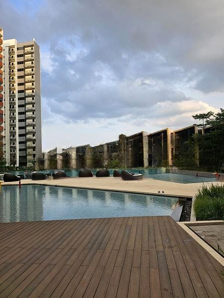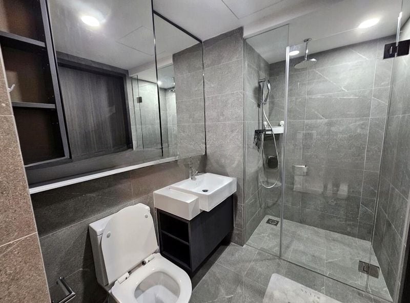 Step into a modern oasis at The Florence Residences, where abundant natural light floods the open-concept living space, accentuating the designer feature walls and creating a cozy ambiance. The sliding glass doors lead you to a spacious balcony, offering unblocked panoramic views of the city skyline and neighboring high-rises, perfect for relaxing or entertaining.
