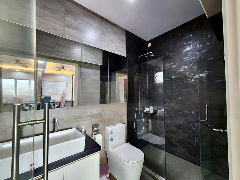 Step into this beautifully renovated 3-bedroom flat and be greeted by a striking stone-cladding feature wall that sets a modern yet cozy ambiance. The polished tile flooring and cove lighting throughout create a warm and inviting atmosphere, while the urban residential views add to the charm of this well-maintained home.