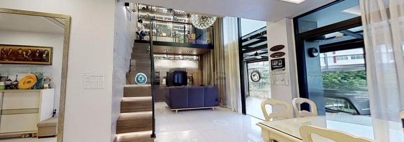 This well-maintained unit features a thoughtful 4-bedroom layout, including a master bedroom with an en-suite bathroom and three spacious common bedrooms. The kitchen boasts sleek white cabinetry and quartz countertops, seamlessly integrated with modern appliances. A household shelter adds practicality to this stylish home, ensuring every corner is both functional and inviting.