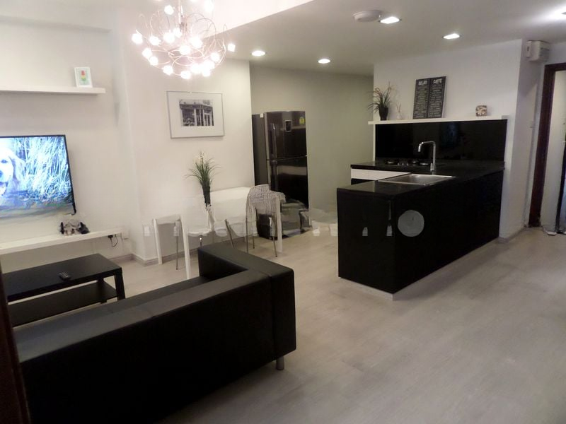 This well-maintained 3-bedroom, 2-bathroom unit boasts standout features including a stylish island kitchen with black countertops and minimalist cabinetry, perfect for culinary enthusiasts. The spacious living area seamlessly integrates with the dining space, while the bedrooms offer mirrored built-in wardrobes and en-suite facilities for added convenience. The bathroom's unique red patterned tile feature wall adds a touch of character to this contemporary home.