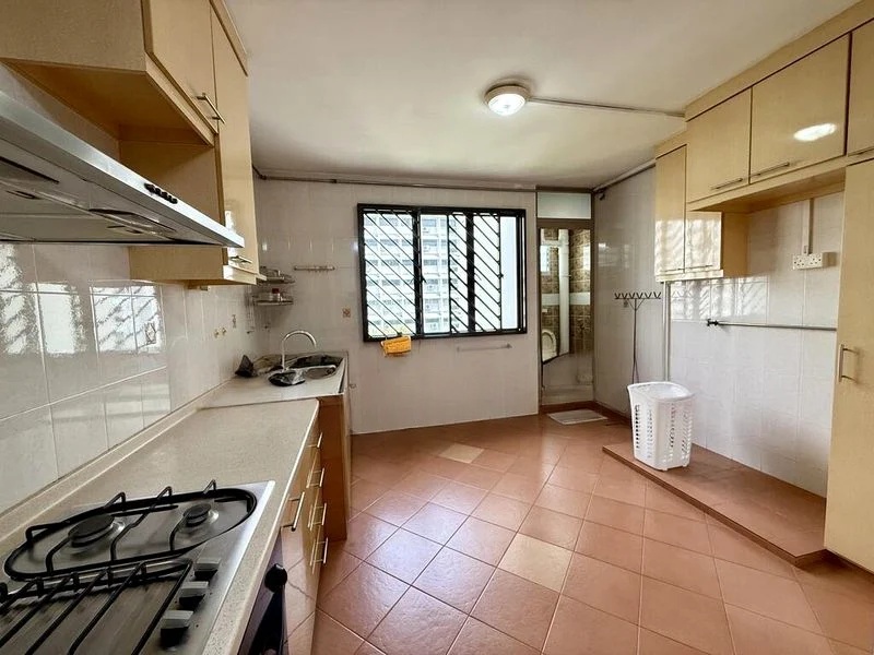 Step into this beautifully renovated 3-bedroom flat and be greeted by a functional yet inviting ambiance. The moderate natural light filters through, highlighting the extensive built-in carpentry and the thoughtful layout that integrates a study desk and shelving, perfect for modern living. The views of neighboring residential buildings create a sense of community while maintaining privacy.