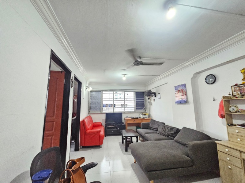 Step into this well-maintained 3-bedroom flat, where a cozy ambiance greets you with moderate natural light filtering through the windows. The tiled flooring throughout adds a touch of elegance, while the floor-to-ceiling bookshelf invites you to unwind with your favourite reads. Enjoy views of the neighbouring buildings, creating a sense of community in this inviting space.