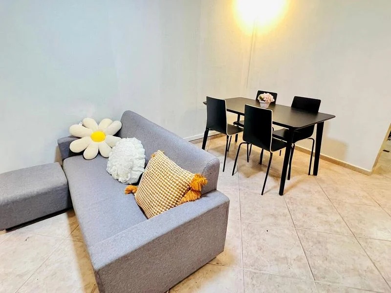 Step into this inviting 2-bedroom HDB flat and be greeted by the warmth of classic mosaic tiled flooring that flows seamlessly throughout the living spaces. The moderate natural light filters in, creating a cozy ambiance that feels both functional and traditional. Enjoy views of the lush greenery and friendly neighborhood right from your windows, enhancing the sense of tranquility in your new home.