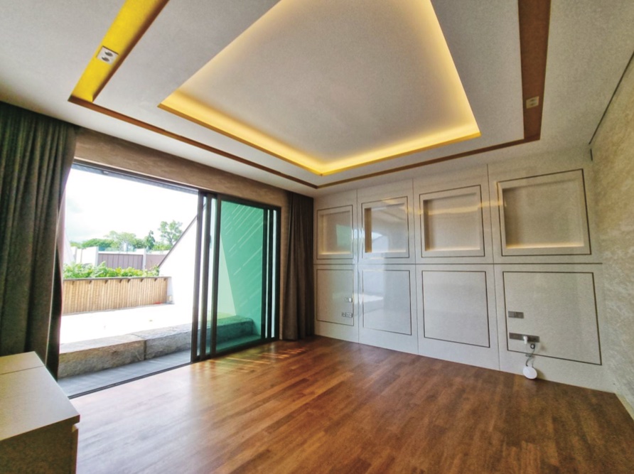 This spacious 4-bedroom, 5-bathroom unit boasts standout features including a modern island kitchen with stainless steel countertops and minimalist cabinetry, a dining area adorned with a designer branch chandelier, and a luxurious living room perfect for entertaining. The large balcony, complete with wooden decking and a hanging swing chair, offers an ideal outdoor retreat for relaxation or al fresco dining.