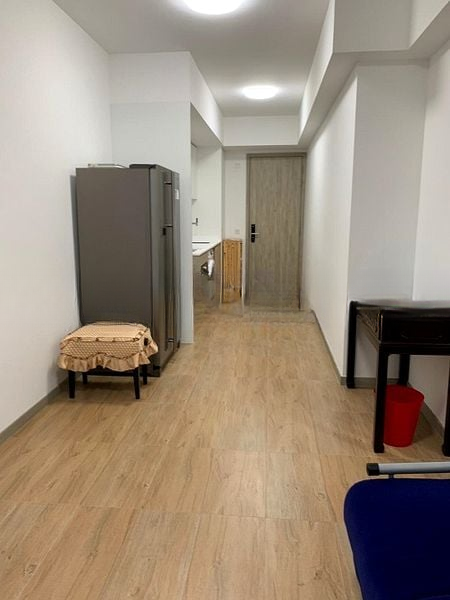 This well-maintained 1-bedroom unit features a thoughtfully designed kitchen equipped with integrated appliances, including a built-in Brandt oven and a Samsung side-by-side refrigerator. The bedroom boasts a built-in wardrobe with internal drawers, ensuring ample storage space while maintaining the minimalist aesthetic. The balcony, adorned with wood-look floor tiles and a stylish plant stand, offers a delightful outdoor space to unwind.