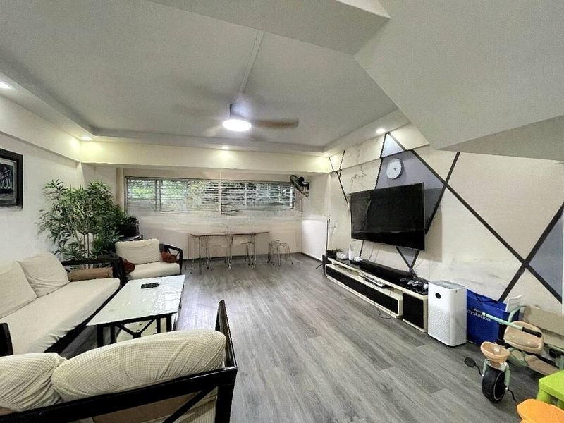 Step into this beautifully maintained HDB flat and be greeted by an abundance of natural light that floods the open-concept living and dining area, accentuated by marble-look flooring and recessed ceiling spotlights. The lush greenery views from multiple rooms create a serene ambiance, making this space feel both bright and airy, perfect for relaxation or entertaining guests.