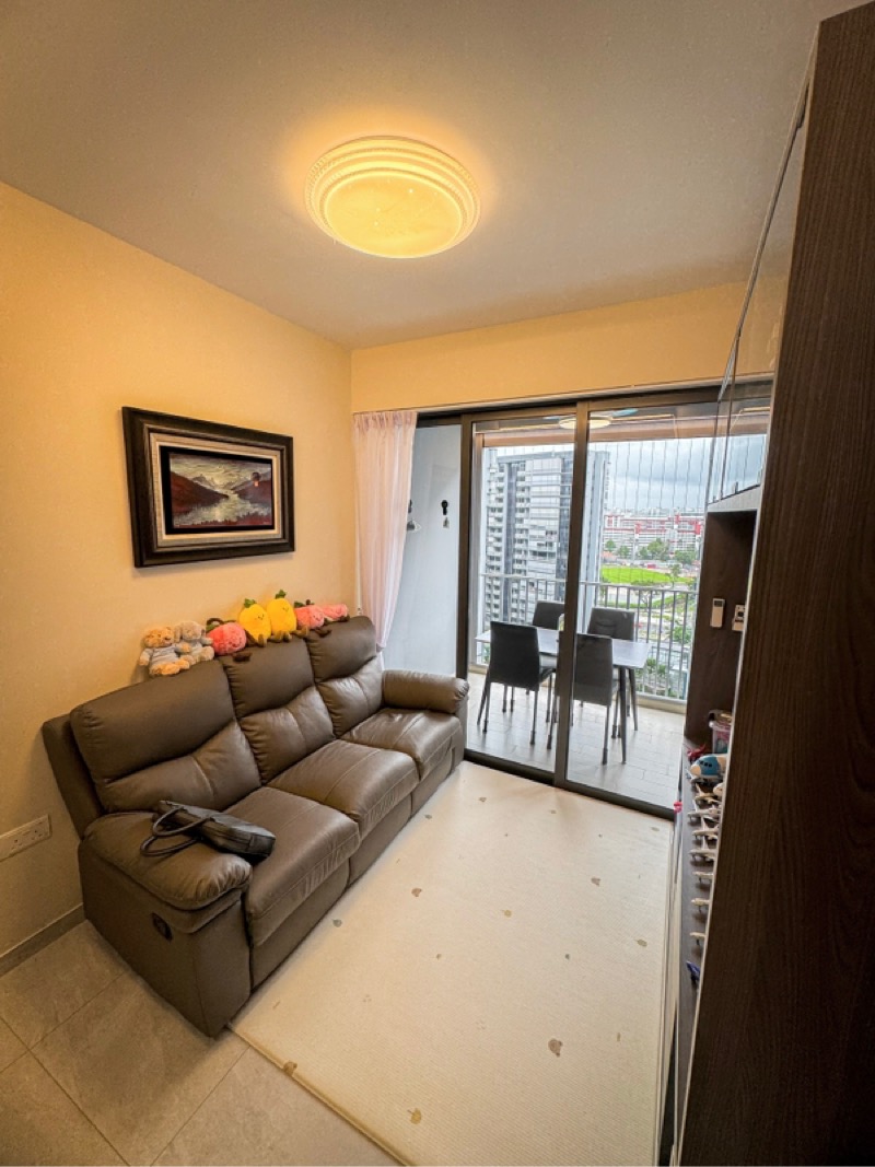 Step into a world of modern elegance as you enter this beautifully renovated unit at The Florence Residences. Bathed in natural light, the living space features a seamless flow from the leather recliner sofa to the balcony, where you can enjoy unobstructed views of the sparkling pool and landscaped gardens. The cove lighting in the master bedroom adds a touch of sophistication, creating an inviting ambiance that feels both functional and stylish.