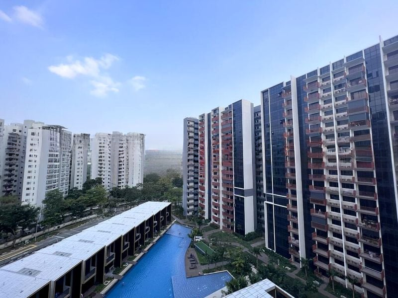 Step into a world of modern elegance as you enter this beautifully renovated unit at The Florence Residences. Bathed in natural light, the living space features a seamless flow from the leather recliner sofa to the balcony, where you can enjoy unobstructed views of the sparkling pool and landscaped gardens. The cove lighting in the master bedroom adds a touch of sophistication, creating an inviting ambiance that feels both functional and stylish.