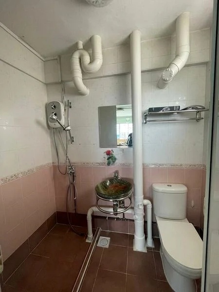 Step into a warm and inviting atmosphere where classic parquet flooring meets a functional layout. The natural light filters through the windows, illuminating the spacious living areas and offering glimpses of the city skyline and neighboring residential blocks. The ambiance is both lived-in and comfortable, making it a perfect canvas for your personal touch.