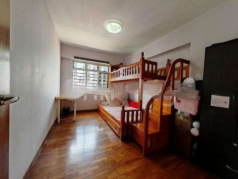 Step into this well-maintained HDB unit and feel the bright, functional ambiance that welcomes you. The spacious living room, adorned with large format tiles and recessed ceiling lights, is bathed in natural light from the large window, offering a view of neighboring residential blocks. The parquet flooring in the bedrooms adds a touch of warmth, while the fully-furnished setup ensures a seamless move-in experience.