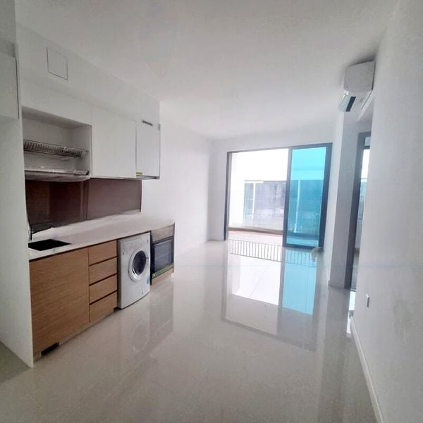 This thoughtfully designed unit boasts standout features including built-in wardrobes in all bedrooms, a sleek one-wall kitchen equipped with integrated appliances, and a modern bathroom with a glass shower partition. The spacious layout ensures comfort and functionality, making it perfect for families or those who love to entertain. The balcony, with its high-floor view and tiled flooring, invites you to unwind and soak in the surroundings.