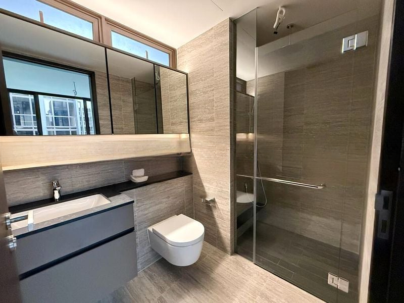 Step into a sanctuary of modern minimalism where abundant natural light floods through floor-to-ceiling windows, creating a warm and inviting ambiance. The sleek finishes and clean lines of the unit are complemented by views of neighboring greenery, making every moment spent here a serene escape from the bustling city.