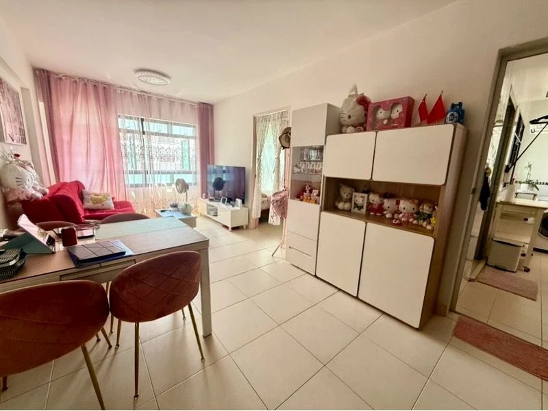 Step into this charming HDB flat and be greeted by a warm ambiance, where wood-look flooring flows seamlessly throughout the living spaces. Natural light filters through the windows, enhancing the cozy atmosphere, while urban views provide a delightful backdrop to your daily life. The tasteful wall art and decals add a personal touch, making this home truly inviting.
