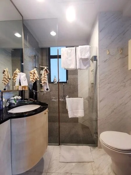 This spacious 3-bedroom unit features a well-designed layout with standout elements such as a large balcony adorned with dark wood decking, perfect for outdoor gatherings. The master bedroom boasts expansive city views and a chic tufted headboard, while the additional bedroom is equipped with built-in wardrobes and ceiling fans for comfort. The comprehensive service zone includes a modern kitchen, yard, and utility room, catering to all your practical needs.
