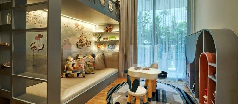 This well-maintained 3-bedroom, 2-bathroom unit features an open-concept living and dining area, complete with a designer dining set and a large L-shaped sofa, perfect for entertaining. The integrated kitchen boasts dark wood-grain cabinetry, high-end appliances, and a stylish breakfast bar. Each bedroom is thoughtfully designed, with custom built-in loft beds and ample storage, while the study offers direct access to the balcony, making it an ideal workspace.