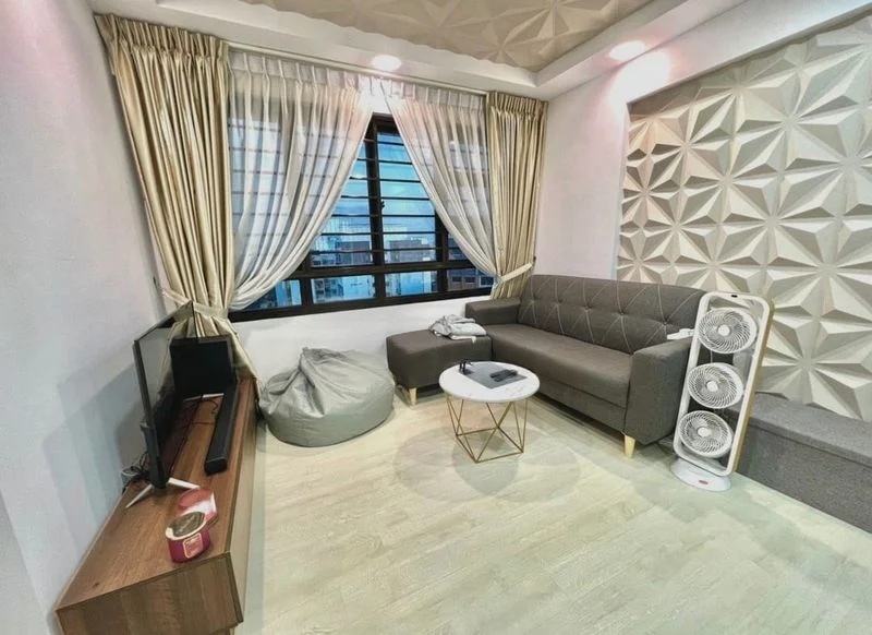 Step into this inviting HDB flat and feel the warmth of a lived-in space, where large windows frame captivating city lights, creating a vibrant ambiance. The moderate natural light enhances the functional layout, making it a comfortable retreat after a long day.