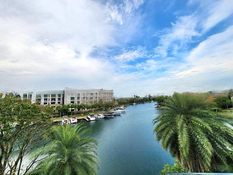 Step into a world of elegance as you enter this exquisite unit at Coral Island. The abundant natural light floods through the floor-to-ceiling glass windows, offering breathtaking views of the waterway, lush greenery, and swaying palm trees. The bright and airy ambiance is complemented by modern designer furnishings, creating an inviting atmosphere that feels both luxurious and comfortable.