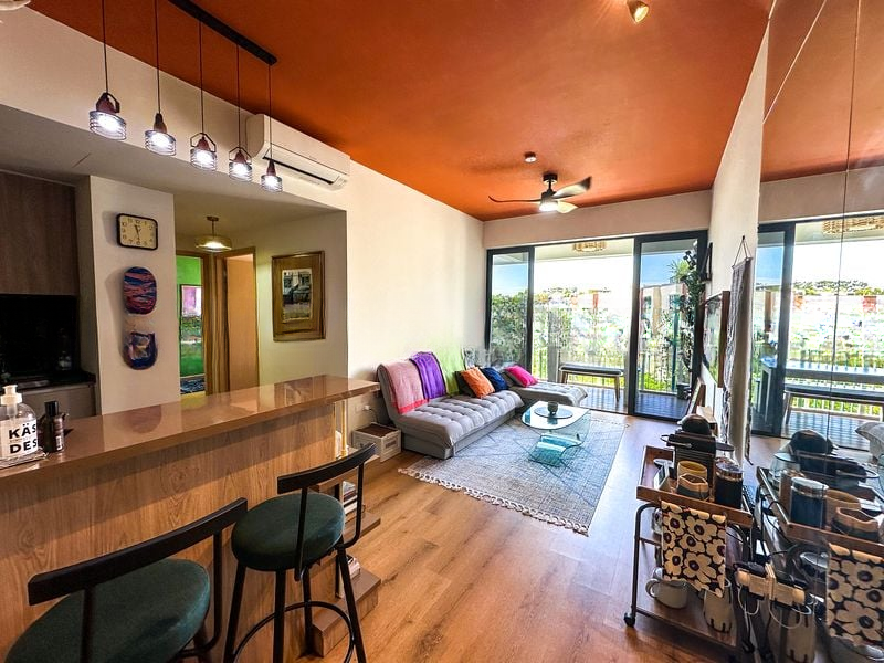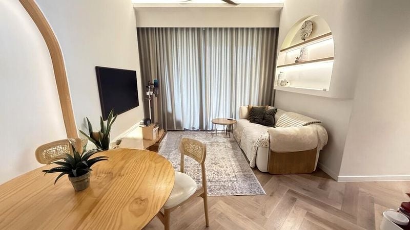 Step into a serene oasis at The Jovell, where abundant natural light floods the open-concept living area, accentuating the modern minimalist finishes. The seamless flow from the living room to the balcony offers a perfect blend of urban and greenery views, creating a tranquil ambiance that invites relaxation.