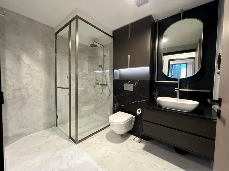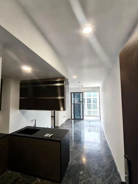 Step into a world of elegance as you enter this brand-new unit at One Bernam. The abundant natural light floods through the floor-to-ceiling windows, illuminating the sleek grey marble flooring and creating a warm, inviting ambiance. The modern architectural facade and illuminated woven design add a touch of sophistication, while the balcony offers a perfect spot to unwind with stunning city skyline views.