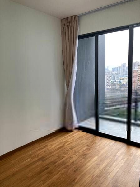 Step into a bright and airy sanctuary at Stirling Residences, where abundant natural light floods through full-height windows, showcasing unblocked city skyline views and lush greenery. The glossy floor tiles and open-concept layout create an inviting ambiance, perfect for relaxation and entertaining.