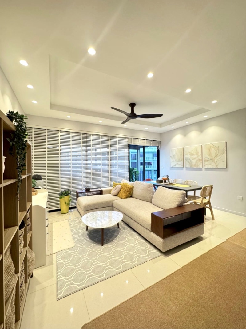 This thoughtfully designed 3-bedroom unit features an open layout that maximizes space and functionality. The living area flows seamlessly into the dining space, perfect for entertaining. The bedrooms are generously sized, providing comfort and privacy, while the bathrooms boast modern fittings. Enjoy the luxury of a large swimming pool and beautifully landscaped gardens, complete with hammocks and shallow water features, creating a resort-like experience right at home.