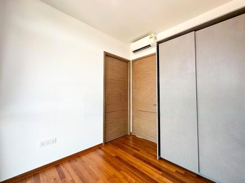 This efficient 3-bedroom layout boasts standout features such as platform beds with integrated storage, custom built-in cabinetry, and a galley kitchen with dual-tone cabinetry and an integrated washing machine. The master bedroom includes an en-suite bathroom, while the versatile third bedroom currently serves as a study/music room, perfect for modern living. Every detail, from the designer ceiling fans to the wall-hung toilets, reflects quality and style.