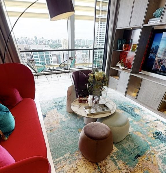 This spacious 3-bedroom unit boasts an open layout with standout features such as an island kitchen equipped with built-in appliances, a living room adorned with custom shelving and a curved sofa, and a master suite that offers serene city views. Each bathroom is a masterpiece, featuring full marble cladding, a walk-in shower, and a built-in bathtub, ensuring a spa-like experience at home.
