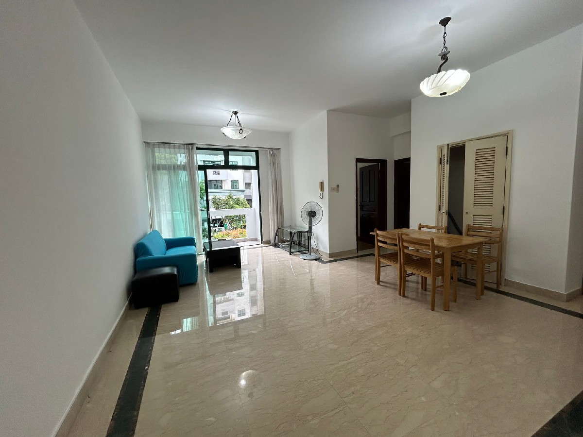 This well-designed 2-bedroom condo features a galley-style kitchen equipped with a gas hob and stainless steel refrigerator, seamlessly blending functionality with style. The master bedroom boasts a spacious built-in wardrobe and convenient en-suite access, while the second bedroom, adorned with parquet wood flooring, includes a cozy study area. The bathrooms are thoughtfully designed with a luxurious bathtub and stylish marble-look vanity, ensuring comfort and sophistication.
