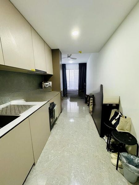 This thoughtfully designed 2-bedroom unit boasts standout features including a compact kitchenette with a built-in oven, a stylish bathroom adorned with marble-effect tiles and a luxurious rain shower, and wood-look laminate flooring in the bedrooms. The minimalist aesthetic is complemented by a modern ambiance, creating a perfect canvas for your personal touch.
