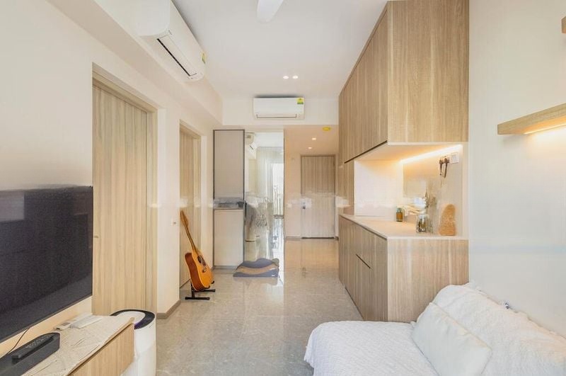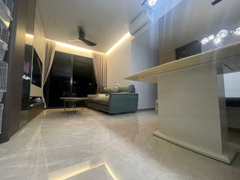 Step into a world of contemporary elegance as you enter this brand-new unit at Sengkang Grand Residences. Bathed in abundant natural light, the open-concept living room features polished floor tiles and seamless access to a private balcony, offering refreshing urban residential views that invite relaxation and leisure.