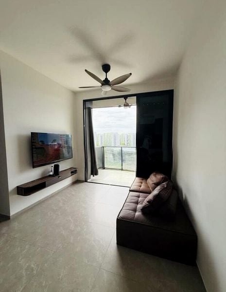 Step into a bright and airy sanctuary at Park Colonial, where abundant natural light floods through floor-to-ceiling windows, creating an inviting atmosphere. The glass balcony railing offers stunning views of the pool and lush greenery, making it the perfect spot to unwind and enjoy the serene surroundings.