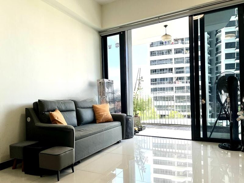 Step into this bright and airy unit at D'LEEDON, where abundant natural light floods the open-concept living and dining areas. The panoramic windows frame breathtaking views of the city skyline and lush greenery, creating a serene ambiance that invites relaxation. The large balcony, adorned with elegant wooden decking, is perfect for outdoor dining while soaking in the vibrant surroundings.