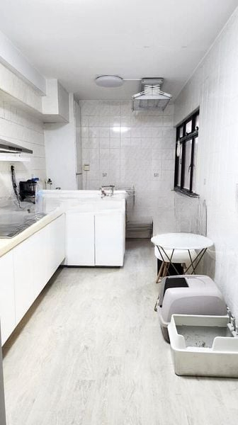 This well-maintained 3-bedroom flat features a thoughtfully designed open-concept layout, perfect for both relaxation and entertaining. The modern galley kitchen boasts grey cabinetry and white countertops, equipped with a built-in oven and induction hob for the culinary enthusiast. Retreat to the master bedroom, complete with a built-in wardrobe and wood-look flooring, while the common bedroom offers a refreshing light blue palette. The bathrooms are a highlight, featuring a luxurious rain shower and a striking black vessel sink.