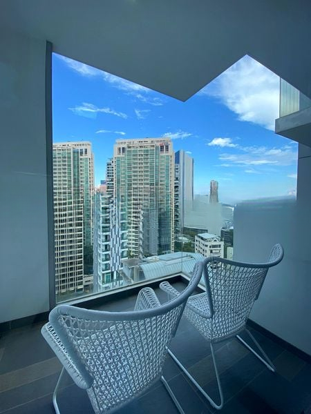 Step into this beautifully renovated 2-bedroom unit at 26 NEWTON, where abundant natural light floods the open-concept living space, accentuating the modern minimalist design. The white tiled flooring and large windows offer a seamless connection to the breathtaking city skyline views, creating an inviting ambiance that feels both spacious and serene.