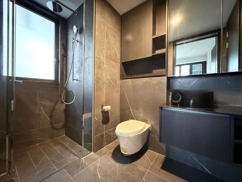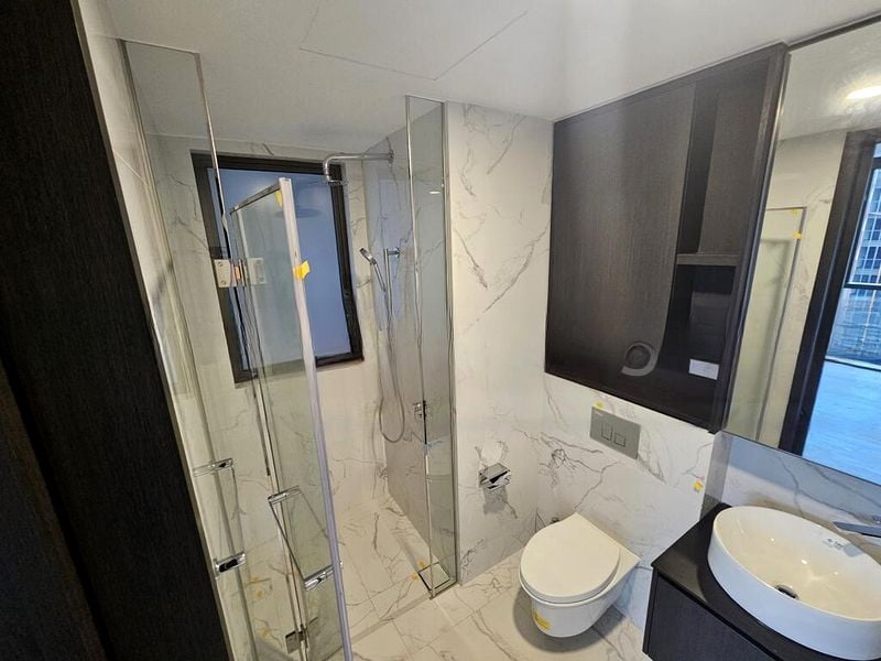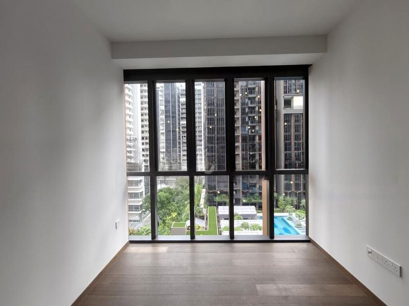Step into a world of elegance as you enter this brand-new unit at LIV @ MB. The abundant natural light floods through the floor-to-ceiling windows, creating a warm and inviting ambiance. Enjoy breathtaking views of the pool and city skyline, complemented by a modern minimalist design that features exquisite marble-look tiles and dark wood flooring.