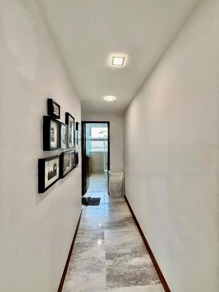 This well-maintained 3-bedroom condominium features polished wood flooring in the bedrooms, adding warmth to the modern design. The galley kitchen boasts white cabinetry and a window that brings in natural light, while the bathrooms are adorned with marble flooring and glass shower partitions for a touch of luxury. With a thoughtful layout, each room is designed to maximize comfort and functionality.