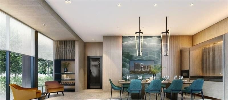 Step into a world of luxury as you enter this brand-new designer unit at The Continuum. Bathed in abundant natural light, the space features exquisite marble feature walls and elegant wood-paneled interiors that create a warm yet contemporary ambiance. Enjoy breathtaking views of the pool, lush greenery, and the city skyline from the floor-to-ceiling glass windows, making every moment in this home feel special.