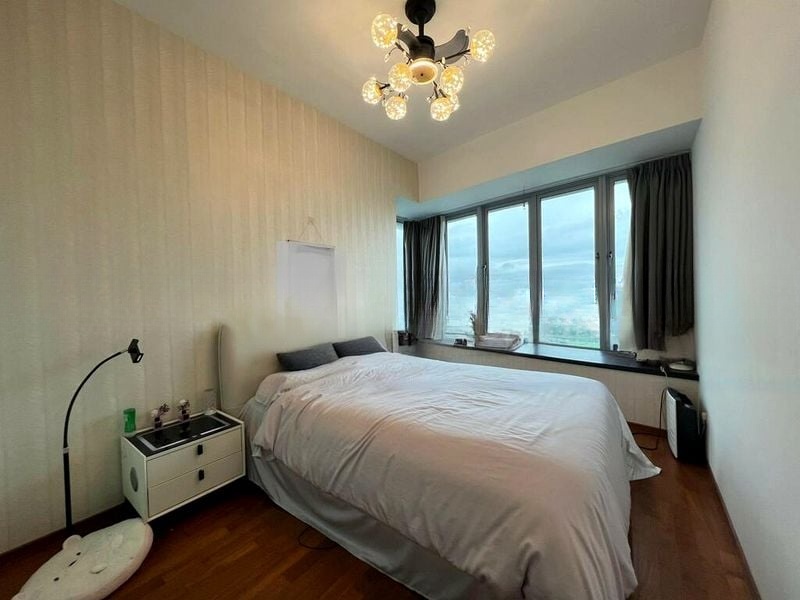 Step into a bright and airy sanctuary where abundant natural light floods the space, highlighting the elegant finishes and designer ceiling fans. The unblocked river views from the living room and balcony create a serene backdrop, while the textured feature walls add a touch of sophistication to the ambiance.