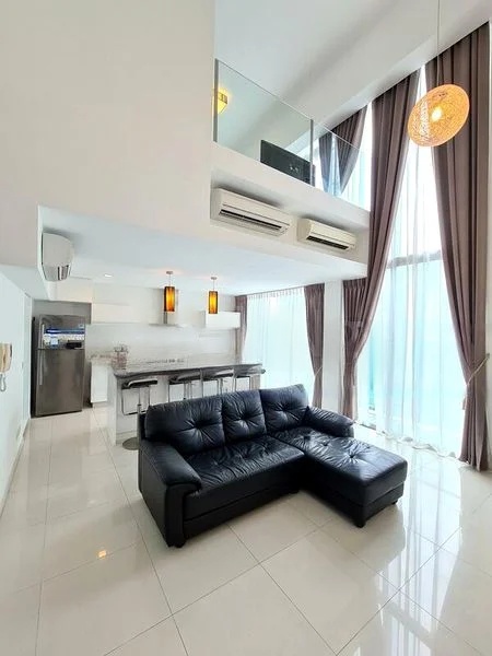 Step into a bright and airy sanctuary at ONE-NORTH RESIDENCES, where abundant natural light floods the space through floor-to-ceiling windows, offering breathtaking views of lush greenery and the urban landscape. The modern glass-fronted facade and architectural sky bridge create an inviting first impression, setting the tone for a home that exudes elegance and sophistication.