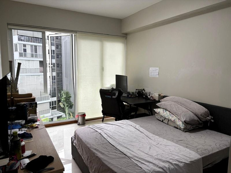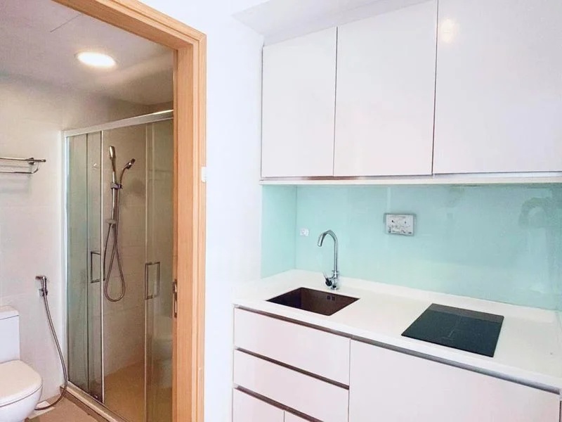 This well-maintained 3-bedroom, 3-bathroom condo boasts a functional galley kitchen featuring black countertops, a built-in oven, and a stainless steel refrigerator. The master bedroom offers an en-suite bathroom with a stylish vessel sink and a dedicated study desk area, ideal for work-from-home arrangements. Each room is designed with extensive built-in storage, ensuring a clutter-free environment.