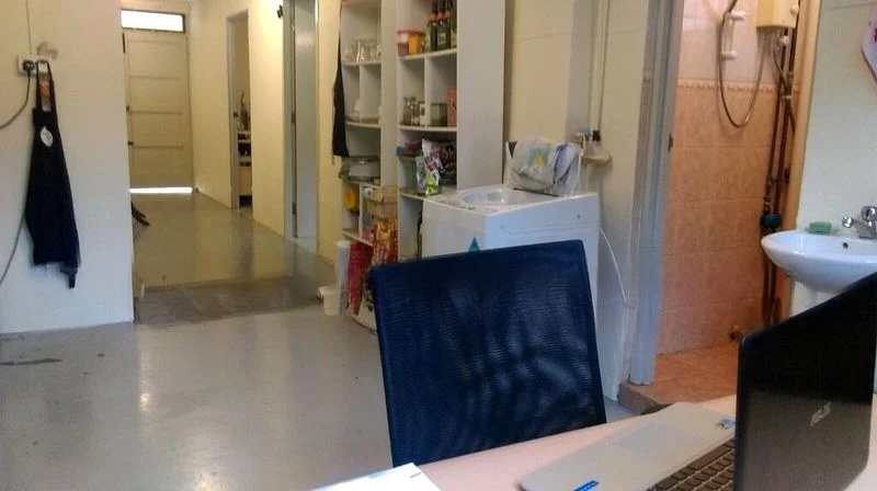 Step into this functional HDB flat and feel the straightforward charm that greets you. The moderate natural light filters through the living room, highlighting the white tiled flooring and the ceiling fan that adds a touch of comfort. The ambiance is basic yet inviting, perfect for those who appreciate simplicity.