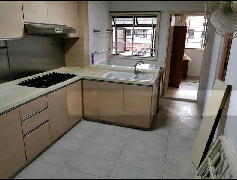 Step into this 700 sqft HDB unit and feel the potential of a spacious living area, bathed in moderate natural light. The neutral wall colors and large format floor tiles create a basic yet functional ambiance, perfect for personal touches. Enjoy the comfort of ceiling fans and air conditioning units throughout, while the views of neighboring buildings remind you of the vibrant community surrounding you.