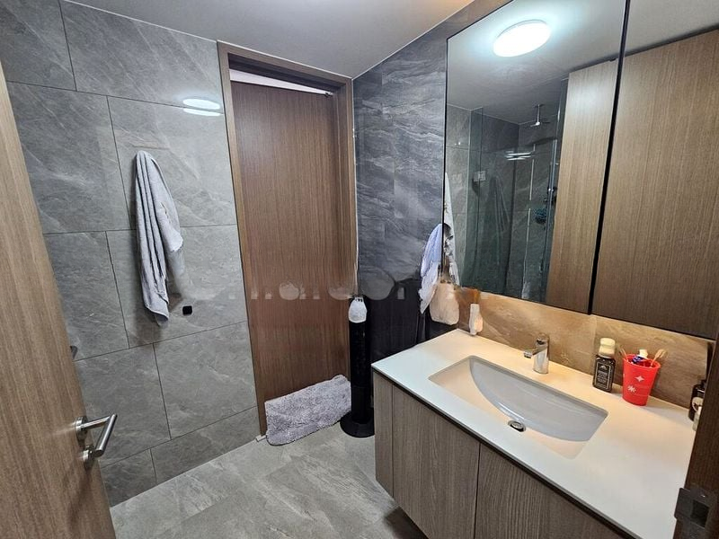 This well-maintained 2-bedroom unit features a master bedroom with floor-to-ceiling windows and integrated headboard lighting that enhances the serene ambiance. The modern bathroom boasts a rain shower and floating vanity, while the common bedroom provides city views and a ceiling fan for added comfort. Thoughtfully designed with invisible grilles for safety, the balcony is perfect for enjoying the stunning vistas.
