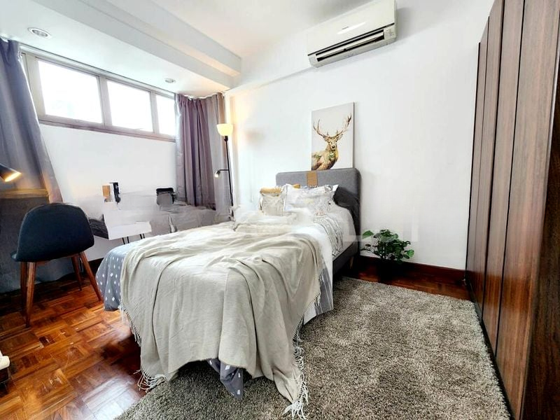Step into a world of modern elegance as you enter this brand-new unit at Orchid Park Condominium. The spacious living room greets you with large format floor tiles and an abundance of natural light streaming through sliding glass doors that lead to a private balcony, offering serene views of lush greenery. The minimalist design is accentuated by polished wood parquet flooring in the bedrooms, creating a warm and inviting ambiance.