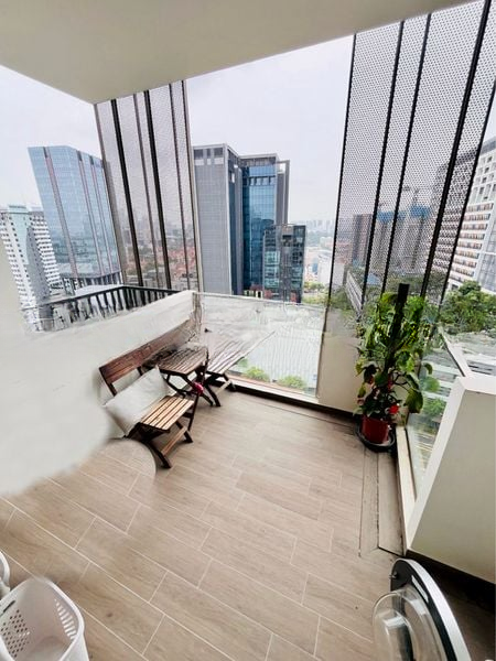 Step into a bright and airy sanctuary at Uptown @ Farrer, where abundant natural light floods through large sliding glass doors, illuminating the polished light grey floor tiles. The open-concept design seamlessly connects the living area to the kitchen, creating a welcoming ambiance that invites relaxation and enjoyment. With stunning views of the city skyline, lush greenery, and the majestic Sri Srinivasa Perumal Temple, this unit offers a unique blend of urban living and tranquil surroundings.
