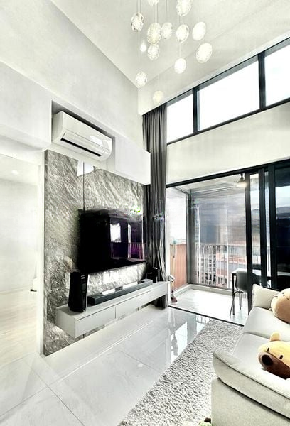 Step into a world of modern elegance as you enter this brand-new 2-bedroom unit at Riverfront Residences. Bathed in abundant natural light, the open layout showcases stunning views of the expansive swimming pool, lush greenery, and the vibrant urban landscape beyond. The minimalist design, highlighted by polished white floor tiles and sleek finishes, creates a serene ambiance that invites relaxation.