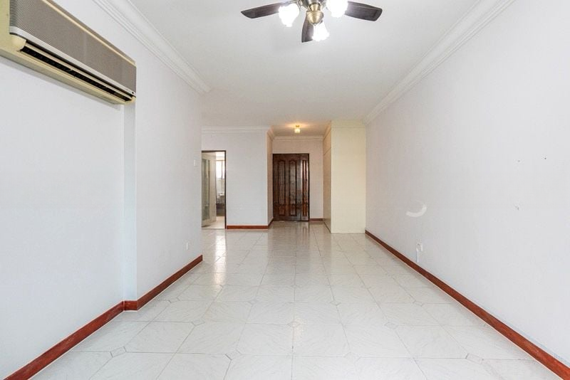 This well-maintained unit features a stylish galley kitchen equipped with an induction hob and built-in oven, complemented by sleek two-tone cabinetry and black stone countertops. Each of the three bedrooms is thoughtfully designed with ceiling fans, built-in wardrobes, and study desks, ensuring both functionality and comfort. The enclosed balcony, with its sliding glass doors and track lighting, extends your living space outdoors, perfect for unwinding after a long day.