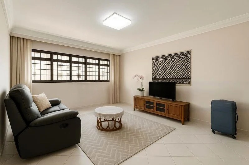 Step into this inviting 3-bedroom HDB flat, where abundant natural light floods the space, creating a warm and cozy ambiance. The polished tile flooring reflects the soft glow of recessed ceiling lights, while the stunning unblocked views of the city skyline and charming shophouse rooftops instantly captivate your senses.