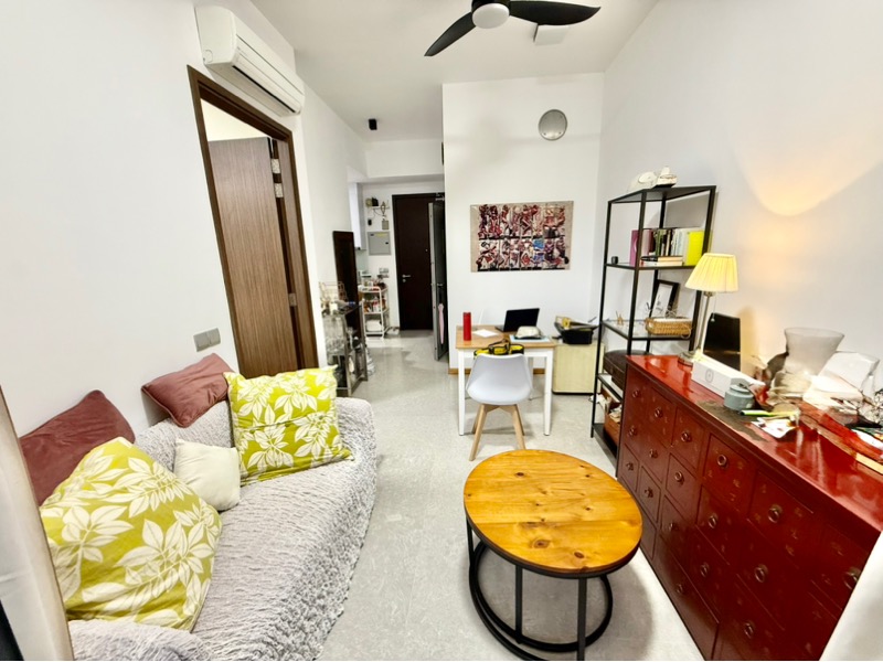 This efficient 1-bedroom plus study layout boasts an open living area complemented by a study nook, perfect for remote work. The fully-furnished space includes a compact kitchen with stainless steel appliances, a stylish bathroom with a rain shower and wood-textured feature wall, and a charming balcony with glass railing, ideal for relaxing or drying clothes. Enjoy the comfort of parquet flooring in the bedroom and a household shelter for extra storage.