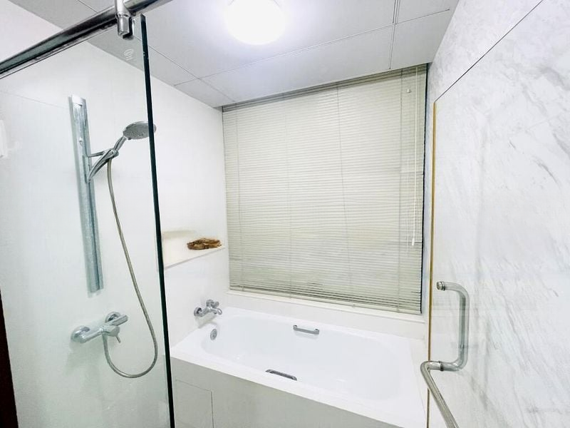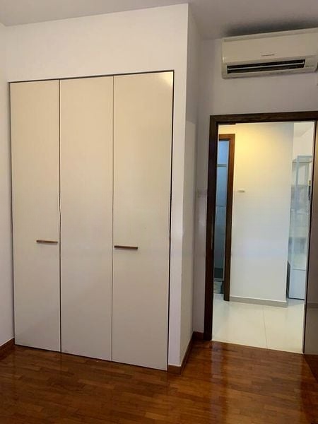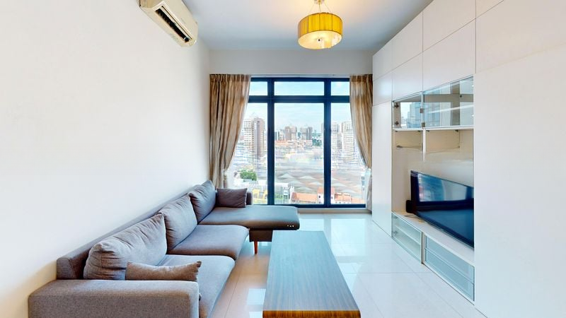 Step into this modern minimalist condominium at City Square Residences, where you are greeted by an unblocked, high-floor view of the city skyline and lush greenery. The natural light filters through the floor-to-ceiling curtains, creating a warm and inviting ambiance that makes you feel right at home.
